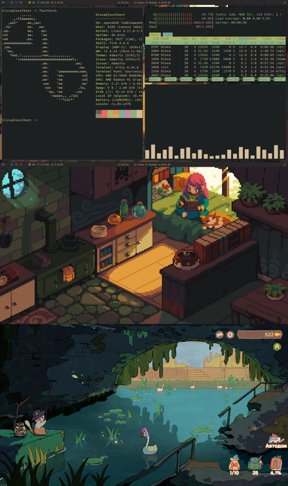 Fastfetch можно лучше настроить, не обязательно показывать Locale, а производителя ssd было бы интересно увидеть, можно ещё монитор, клаву и мышь.