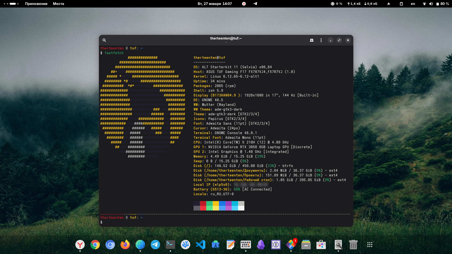 - Терминал: GNOME Console