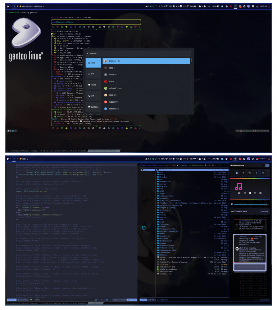 За вcе эти годы Gentoo мне полюбилась настолько, что я сейчас даже не представляю, на что я смог бы её поменять, Hyprland стремительно развивается и то куда он движется меня вполне устраивает. Да есть косяки, но скажите мне, где их нет?