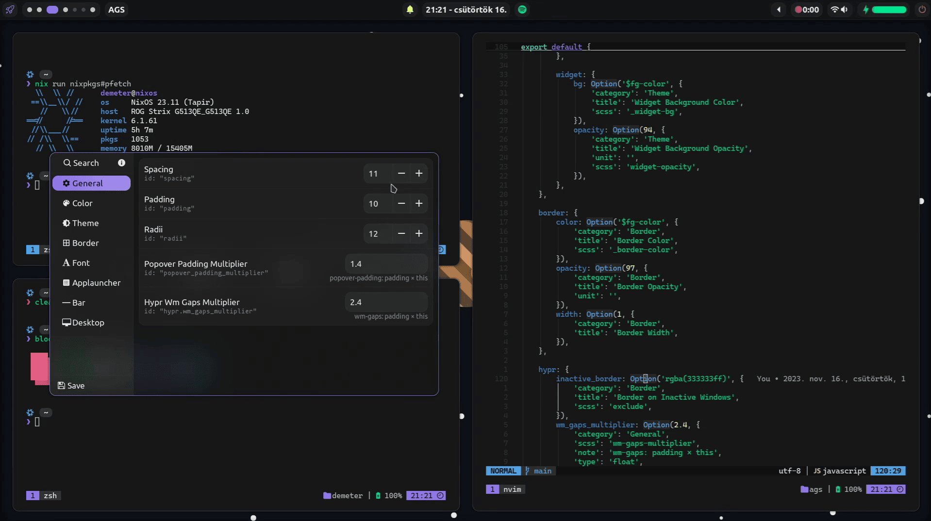 Настройки выполняются в конфигурационном файле ~/.config/hypr/hyprland.conf. Можно сохранить все настройки в одном файле, либо разбить на несколько и подключить дополнительные файлы директивой source.