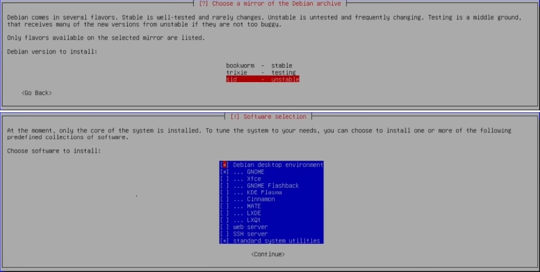 Более двух лет назад поиск по "установка Sid", выдавал, в основном, про подключение нужных реп в stable версии. Но у Debian есть несколько вариантов установки, для сравнения есть mini.iso, в котором установщик с tui.