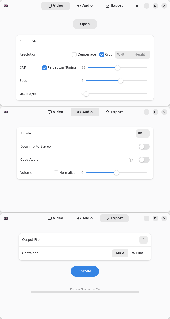 Идея написания появилась из этого — пренебрежение к месту и трафику при передаче видео файлов. Этим всерьёз озабочены разве что большие компании, продающие мультимедийные материалы, вкладывающиеся в разработку и внедрение современных и актуальных кодеков, таких, как AV1 и AV2.